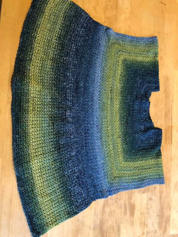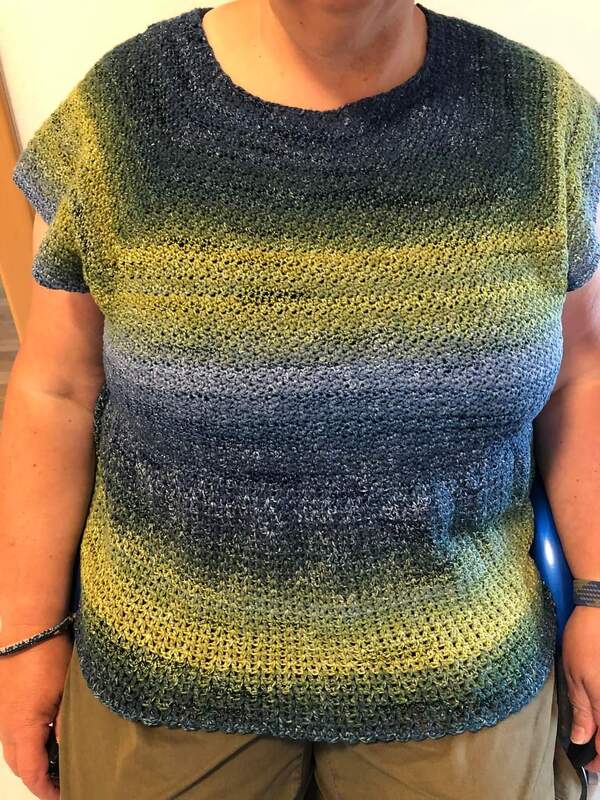Die Tunika auf dem Titelbild ist in Gr. 42 und wurde aus einem 4 fädigen Farbverlaufsgarn
