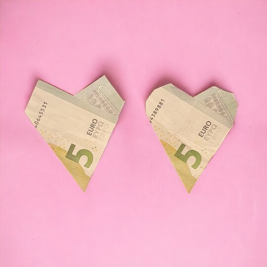 Sechs Geldschein Herzen können als Geldschein Stern zusammengestellt werden.