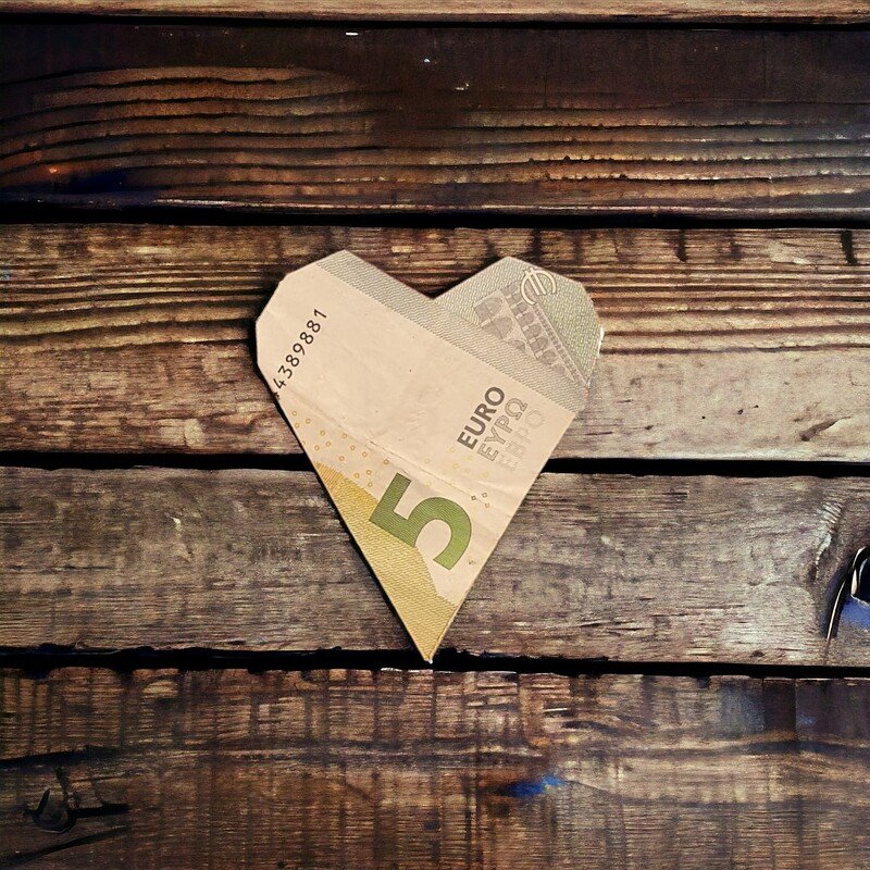Diese Origami Geldschein Herz passen als Geldgeschenk für Hochzeit, Valentinstag, Jahrestag, Muttertag, Vatertag und vielen weiteren Anlässen z.B. zum 04.November. Das Herz ist sehr einfach zu falten. Wird das Herz häufiger gefaltet, kann auf die Vorfaltung verzichtet und das Herz direkt mit zwei Faltungen gefaltet werden.
