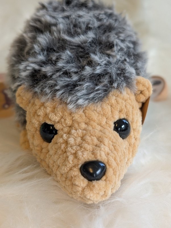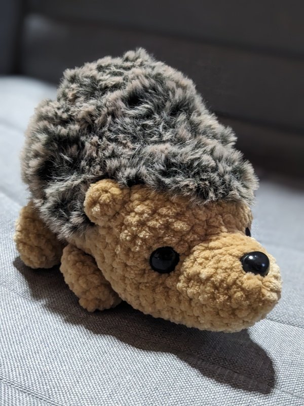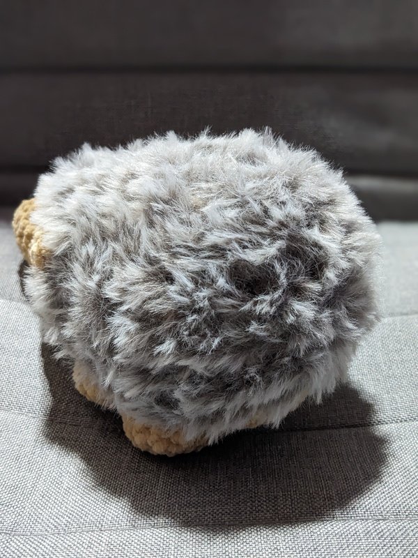 Pelzgarn, Fransengarn oder ähnliches ca. 20 Gramm für die Stacheln, Alternativ Chenille Wolle in der gewünschten Farbe ca. 20 Gramm