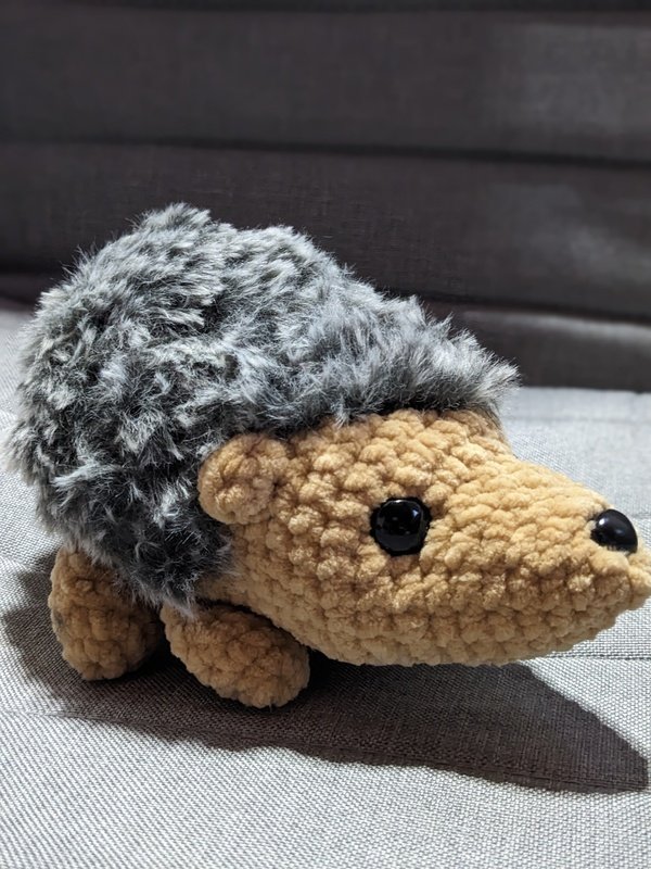 Die Anleitung ist in Deutsch. Mit Hilfe dieser Anleitung können Anfänger und natürlich auch Fortgeschrittene den süßen Igel nachhäkeln. Sie ist ausführlich beschrieben und bietet auch etliche Tipps und Kniffe. Zum Beispiel wie man die Sicherheitsaugen und Nase versiegelt.