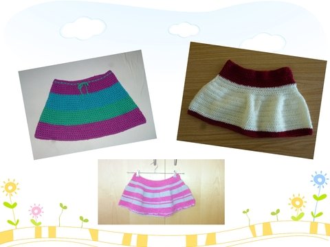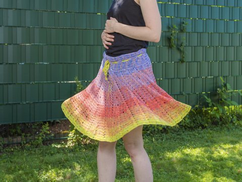 Ein gehäkelter Kinderrock kann schmal und schlicht oder weit schwingend ausfallen – je nach Länge, Zunahmen und Bundlösung. Von luftigen Sommerröckchen bis zu dichteren Varianten für kühlere Tage findest du hier unterschiedliche Rockformen für Kinder, teils auch in weiteren Größen.