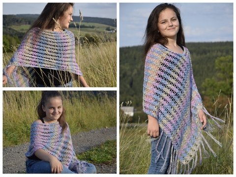 Ein selbst gehäkelter Poncho oder eine Tunika ist schnell übergezogen, bequem und lässt sich je nach Design ganzjährig tragen – von luftig bis kuschelig, teils auch mit Kapuze. Hier findest du Anleitungen für unterschiedliche Kindergrößen und Passformen, vom unkomplizierten Einsteigerprojekt bis zu Varianten mit Muster und Formgebung.