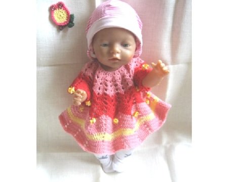 -10% Häkelkleid für Baby Puppe, Größe 40 – 45 cm,
