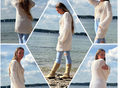 Boho-Kuschel-Wuschel-Häkeljacke mit Taschen