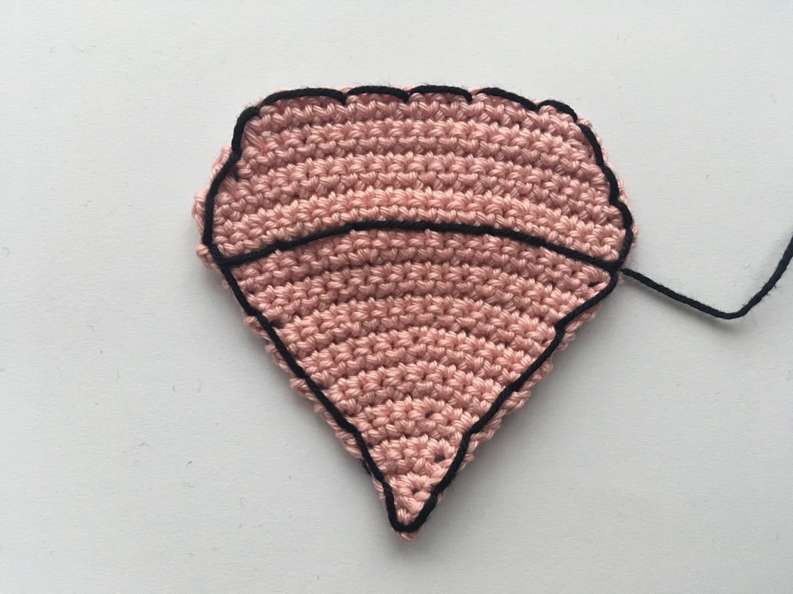 Mit einem schwarzem Faden (ca. 1,70 m lang) die Linien des Diamants aufsticken.