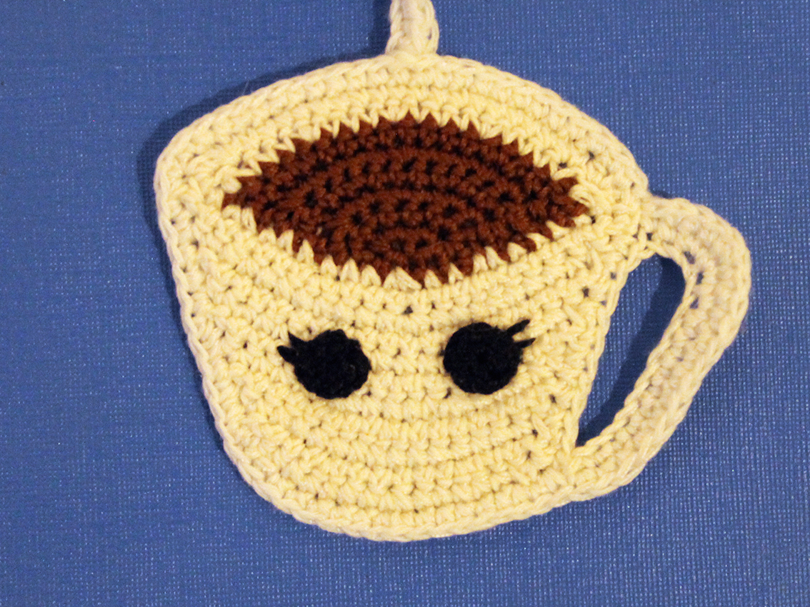 Single crochet the cup evenly around: from points B-C-D-A and along the handle again.