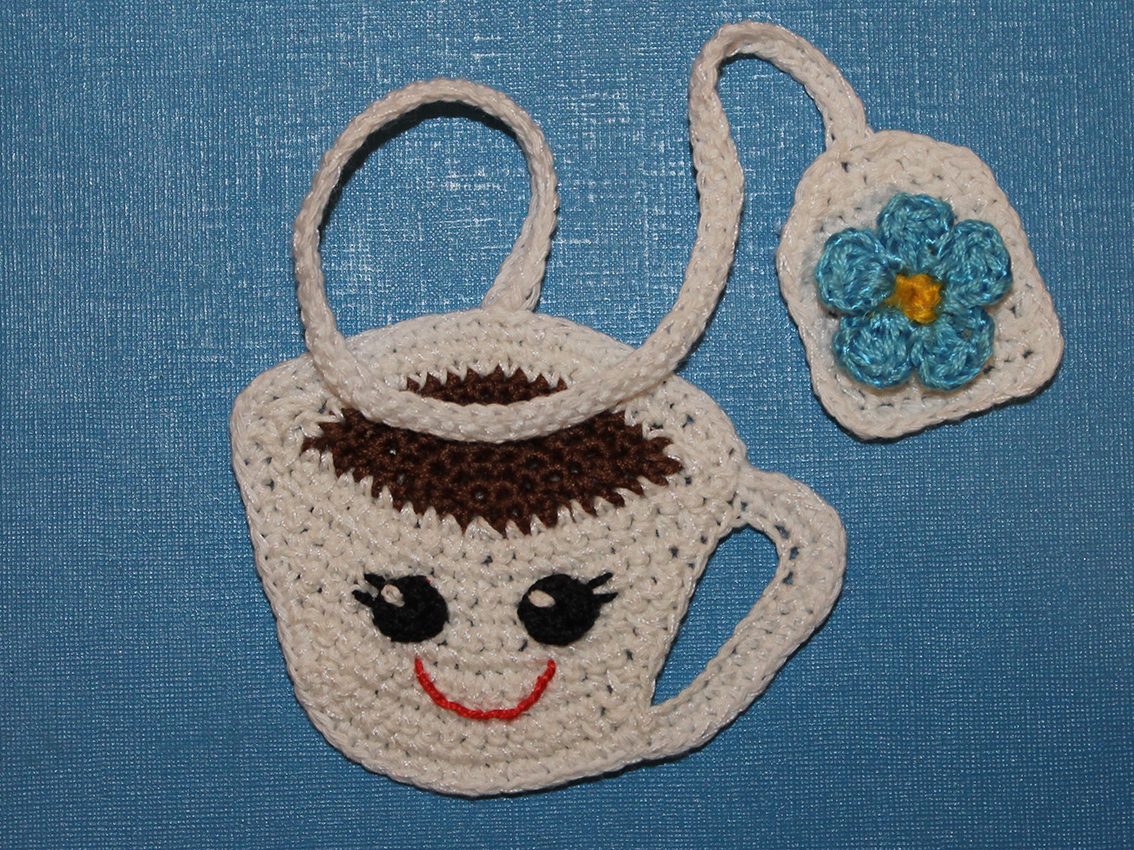 Ch 14, 1 sl st at point A to make the handle of the cup.