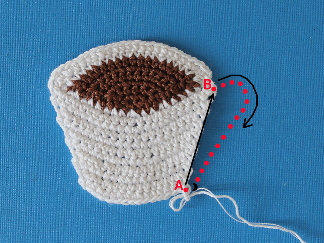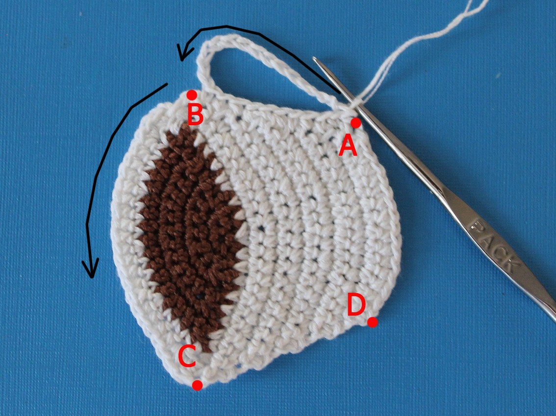 Do not turn. Single crochet from point A to point B.