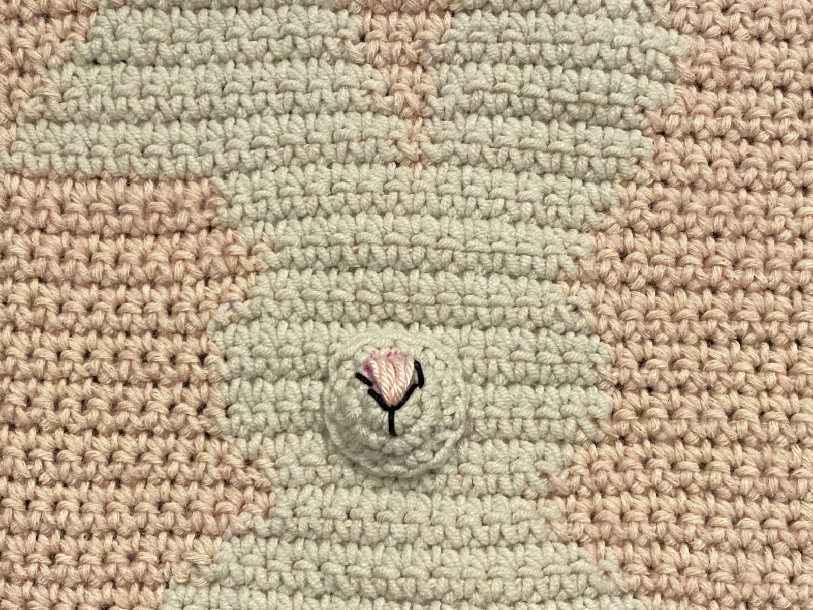 mit schwarzem Baumwollgarn & jeweils 3 Stichen Augen aufsticken