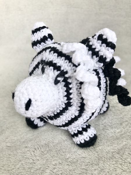 Das fertige Zebra wird eine Größe von ca. 9 cm haben. Das kann variieren, je nachdem wie fest oder locker du häkelst.