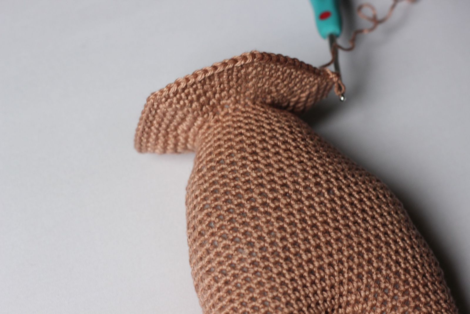 Rnd 43: sc in each of next 7 sts, dec, sc in next st, dec, sc in each of next 9 sts, dec, sc in next st, dec, sc in each of next 2 sts (24 sts)
