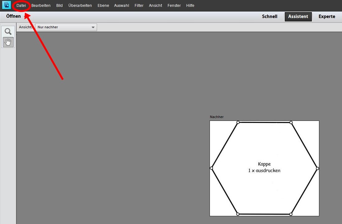 Wir öffnen das Menü Datei.