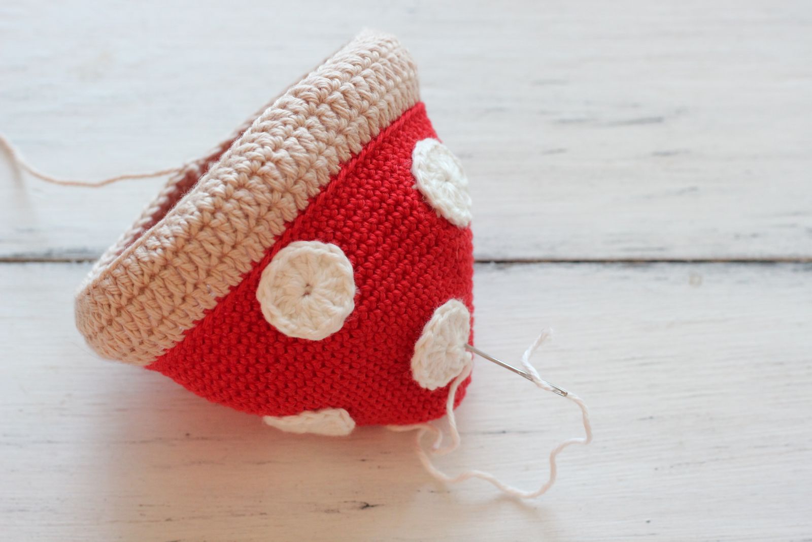 In this free crochet pattern i will show you how to make a fly agaric amigurumi doll wearing a bright red hat with white dots. A lovely giveaway or a unique gift for friends and relatives. It is a quick and little project.