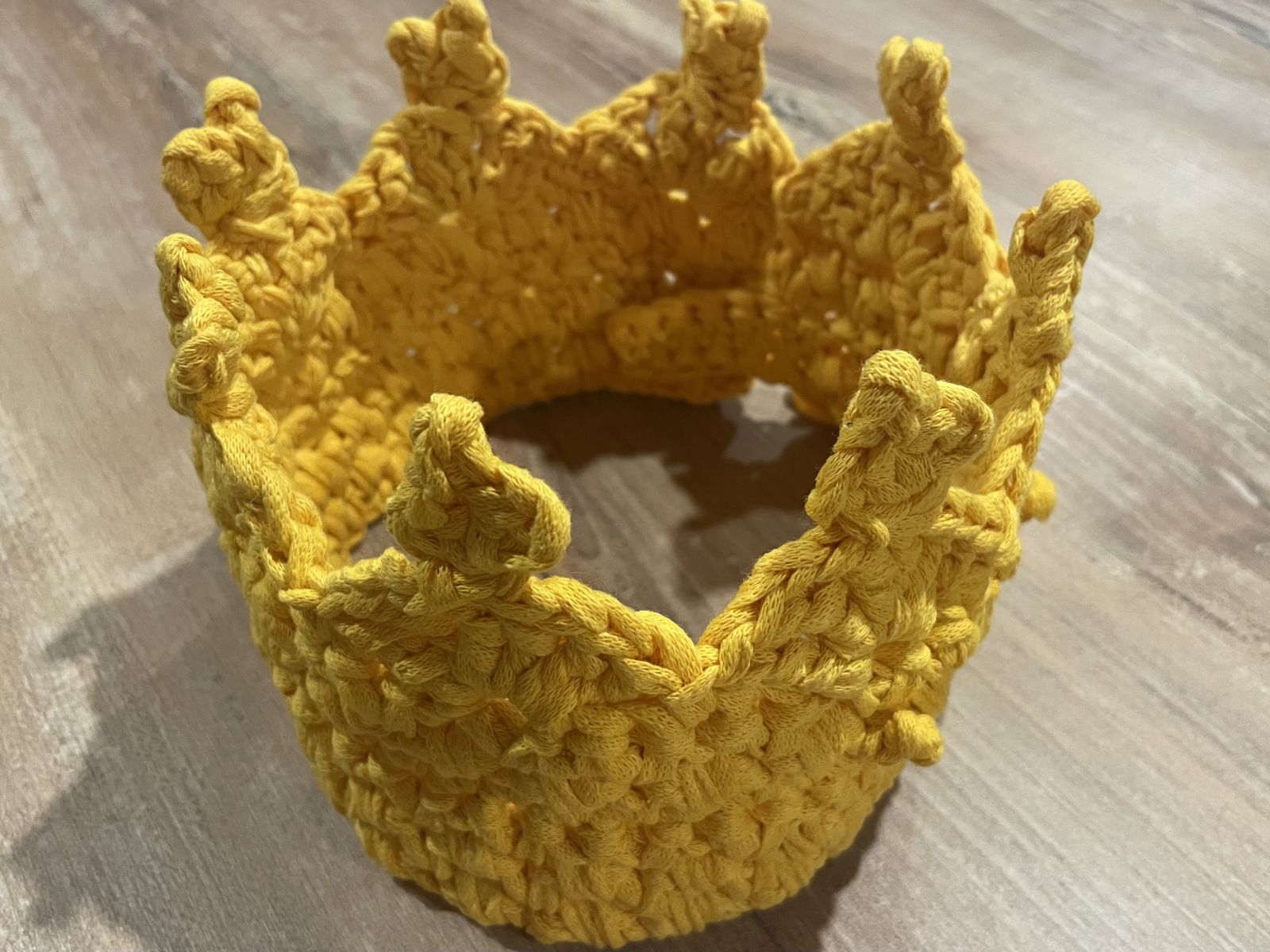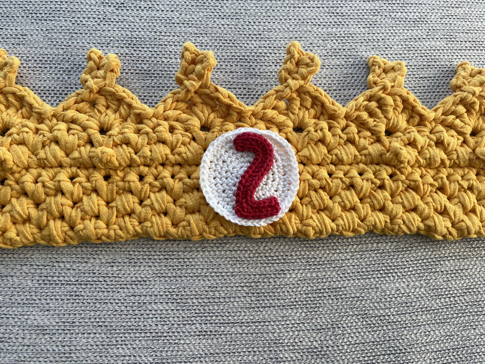 Weave in all ends, attach a Velcro closure, and the crown is ready.