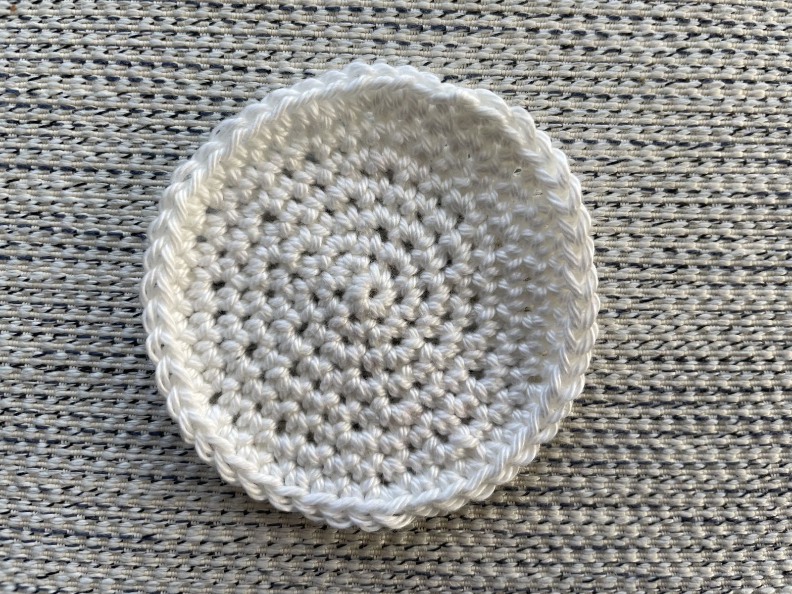 Row 2: Make one chain stitch to start and then crochet one single crochet into each air stitch (48).