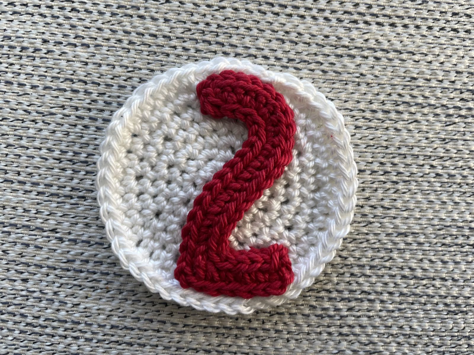 Row 8: In this row, crochet the little "diamonds," which are picot stitches added into the ongoing row and will end up in the center of the crown points—except for the center, where the circle with the number will go.