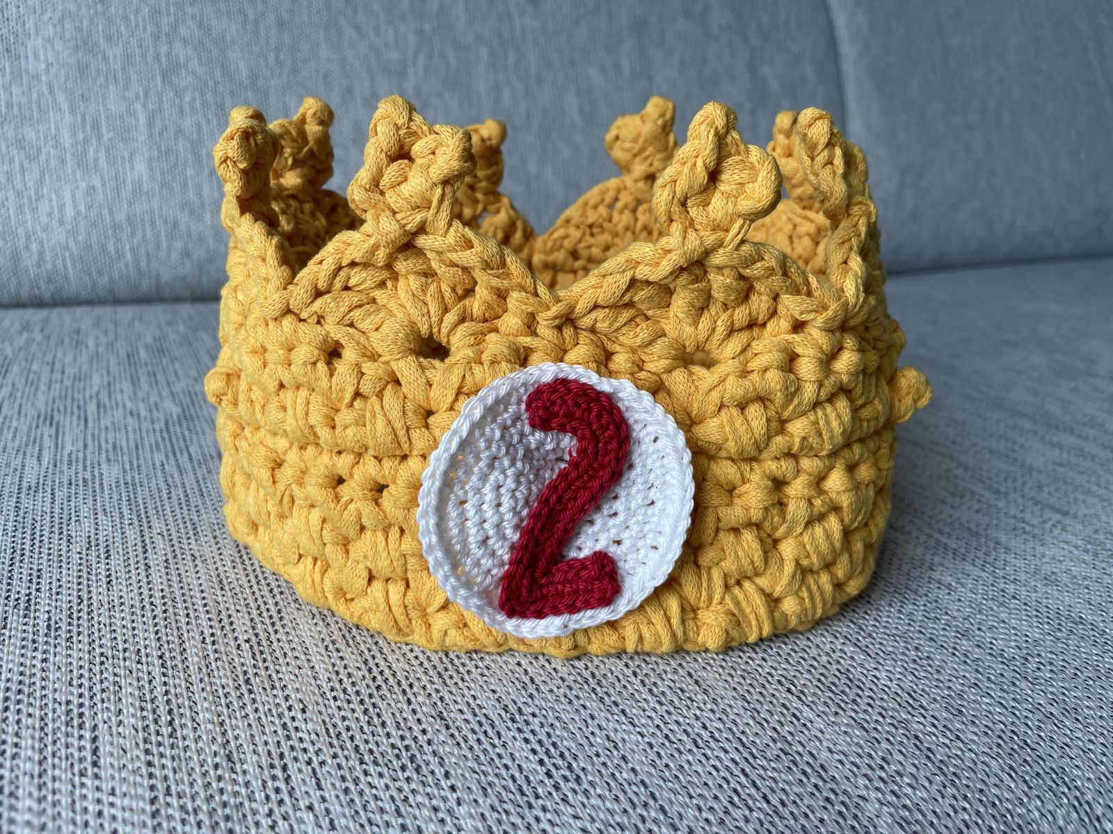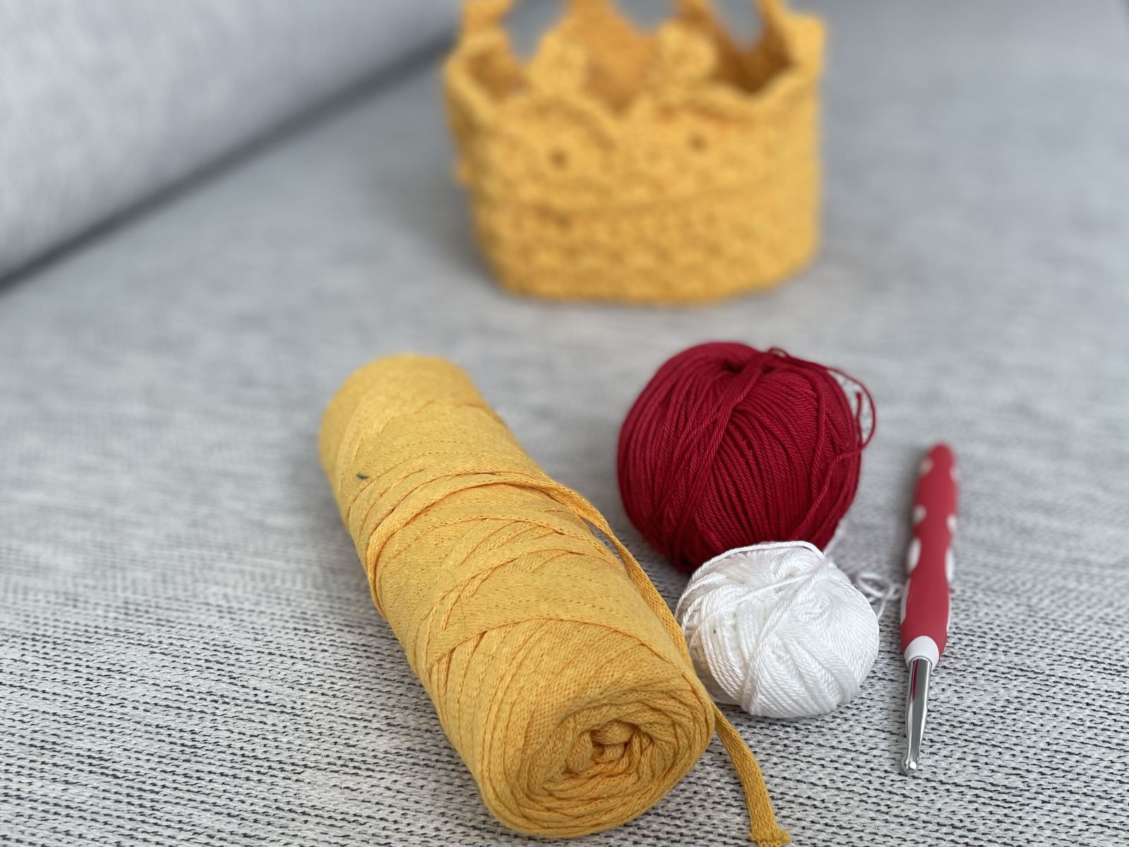 The wide structure of ribbon yarn makes it incredibly easy to work with. This is especially pleasant when I'm crocheting casually, as it forgives small mistakes and allows me to see quick progress. I find this particularly nice as a mom, because I often have only short windows of time, and it's incredibly motivating to quickly see that I'm heading in the right direction. Another big advantage is that the projects I crochet with ribbon yarn naturally take on a very stable shape. This results in beautiful, durable pieces that not only look good but are also practical. Therefore, it is also suitable for projects where stability shouldn't be created with stuffing or other materials. In our crown project, the crown holds its shape very well and doesn't require any additional wire, which could pose a risk of injury if not properly incorporated.