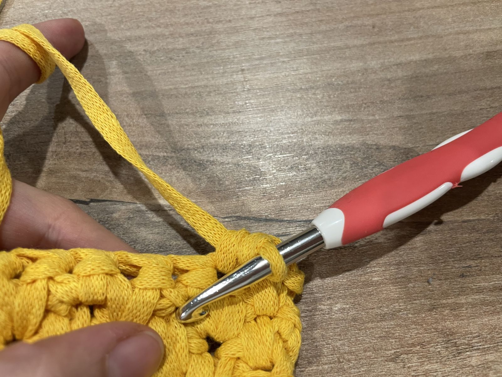 Then pull the yarn through until you're at the same height as the normally crocheted single crochets.