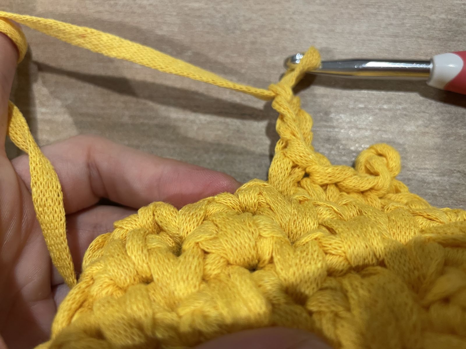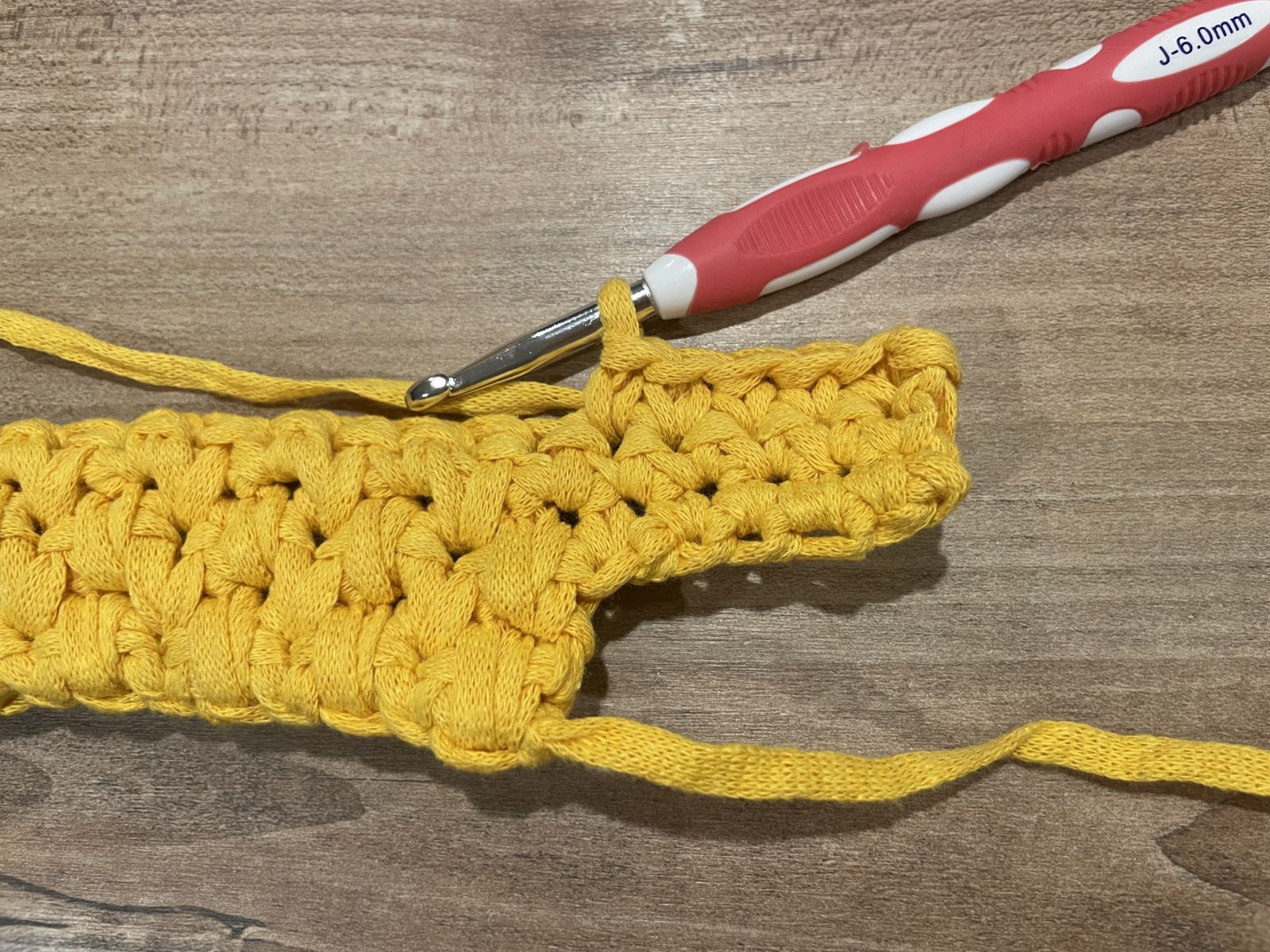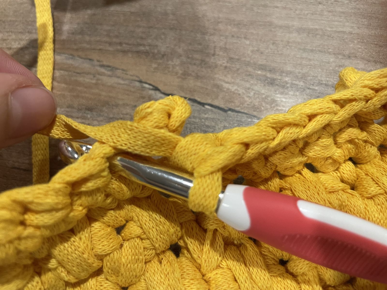 To crochet deep single crochets, insert the hook under the single crochet of the previous row.