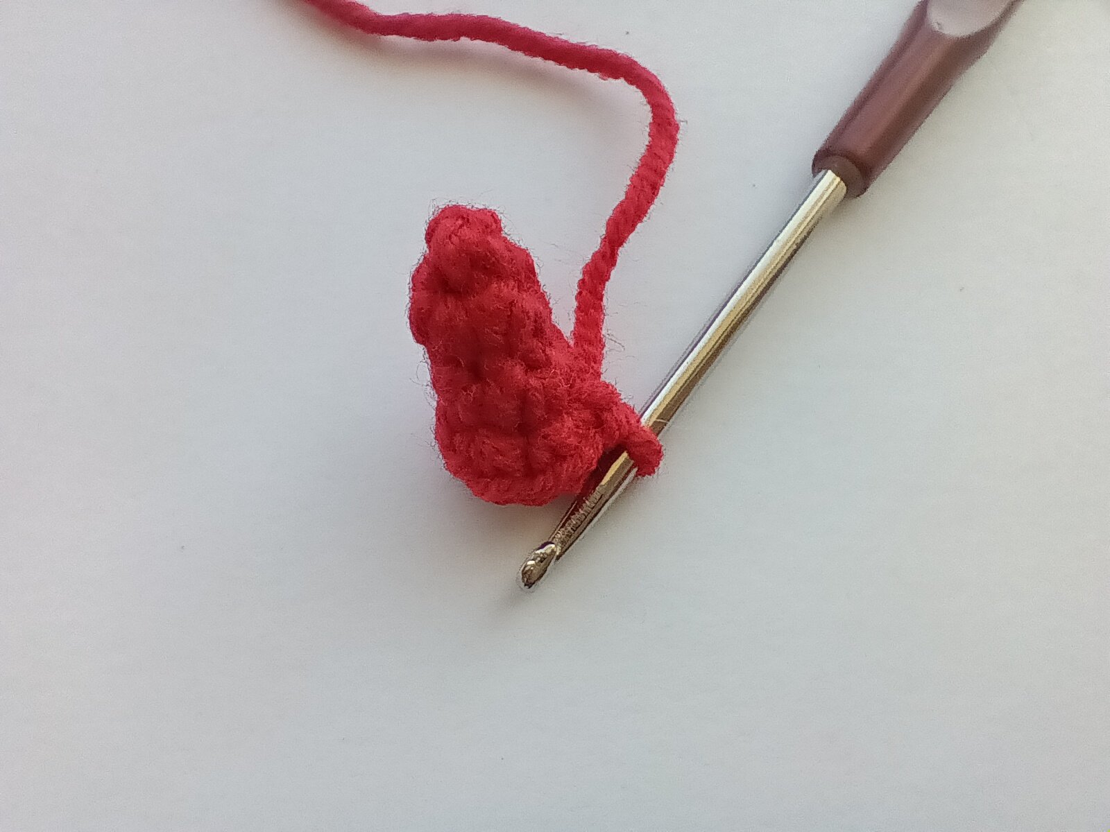 Crochet with red or orange colored yarn and begin with a magic ring.