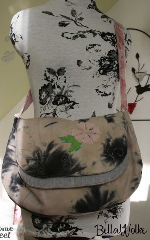 Gewendet wird nicht die komplette Tasche sondern lediglich die Klappe wird doppelt gearbeitet, sodass man die Tasche von beiden Seiten tragen kann.