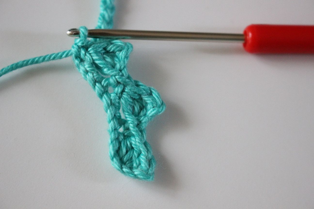 Row 2: *ch3, sc in the second st from hook, dc and hdc tog, c in next st*.