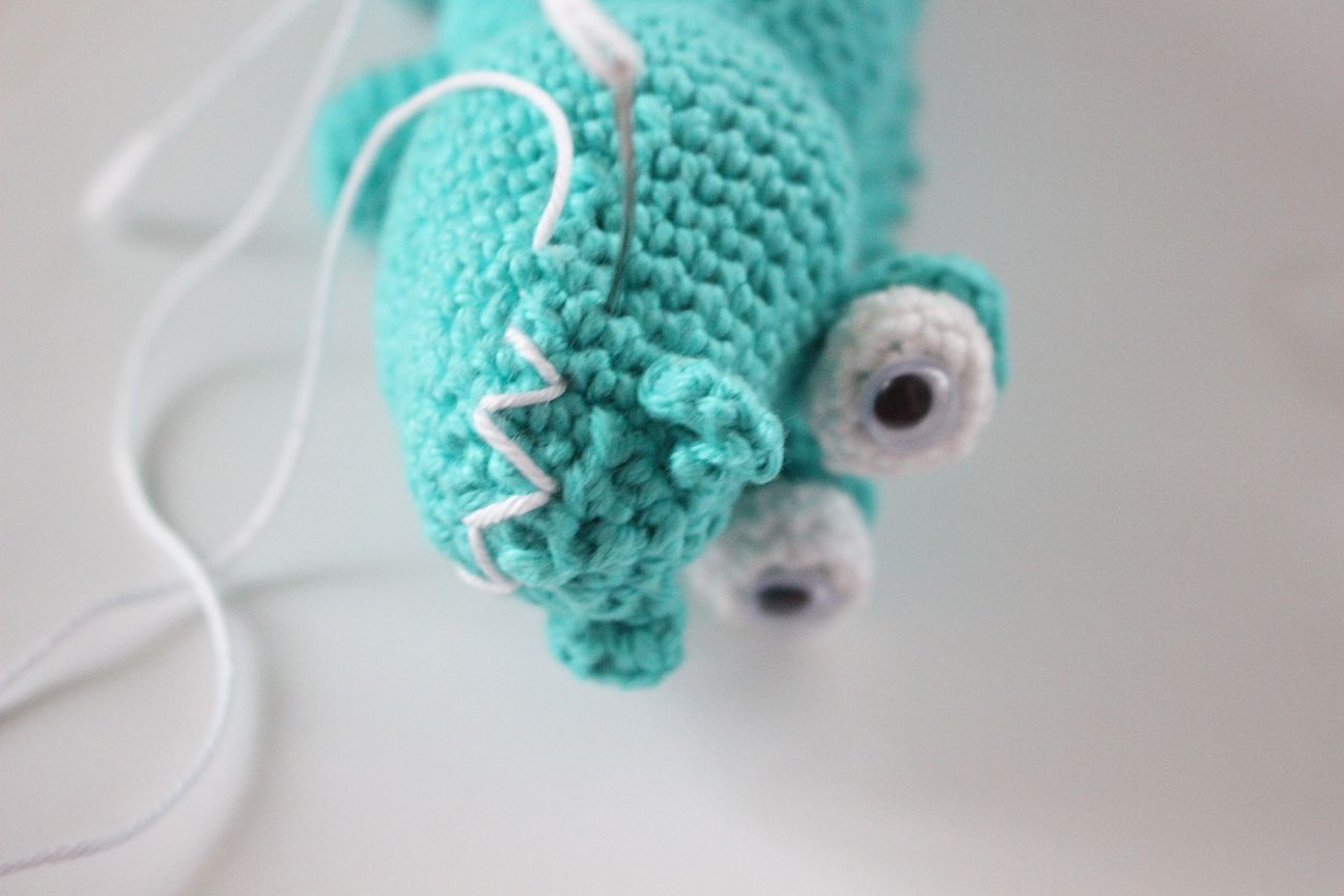 Position eyes and nostrils and sew it to the crocodile´s body.