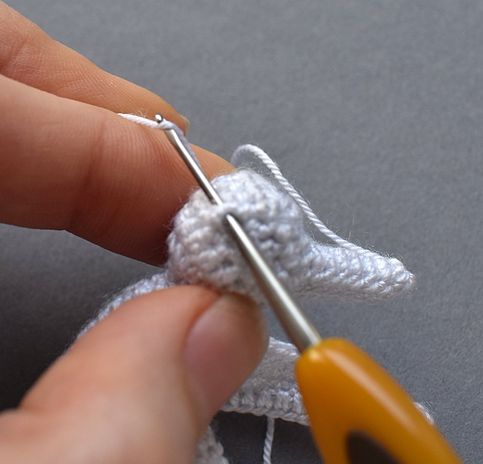 11. 1 dec, 10 sc, 1 dec = 12 sc To add a little fiberfill.