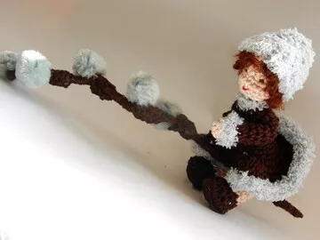 Oder magst du dir jetzt schon ein bisschen Frühling ins Haus holen? Da ist das Blumenkind Palmkätzchen genau der richtige Frühlingsbote! Es wird etwa 15 cm groß und hat biegsame Arme und Beine. So kannst du es in ganz verschiedenen Posen dekorieren. Der Palmzweig wird etwa 21 cm lang.