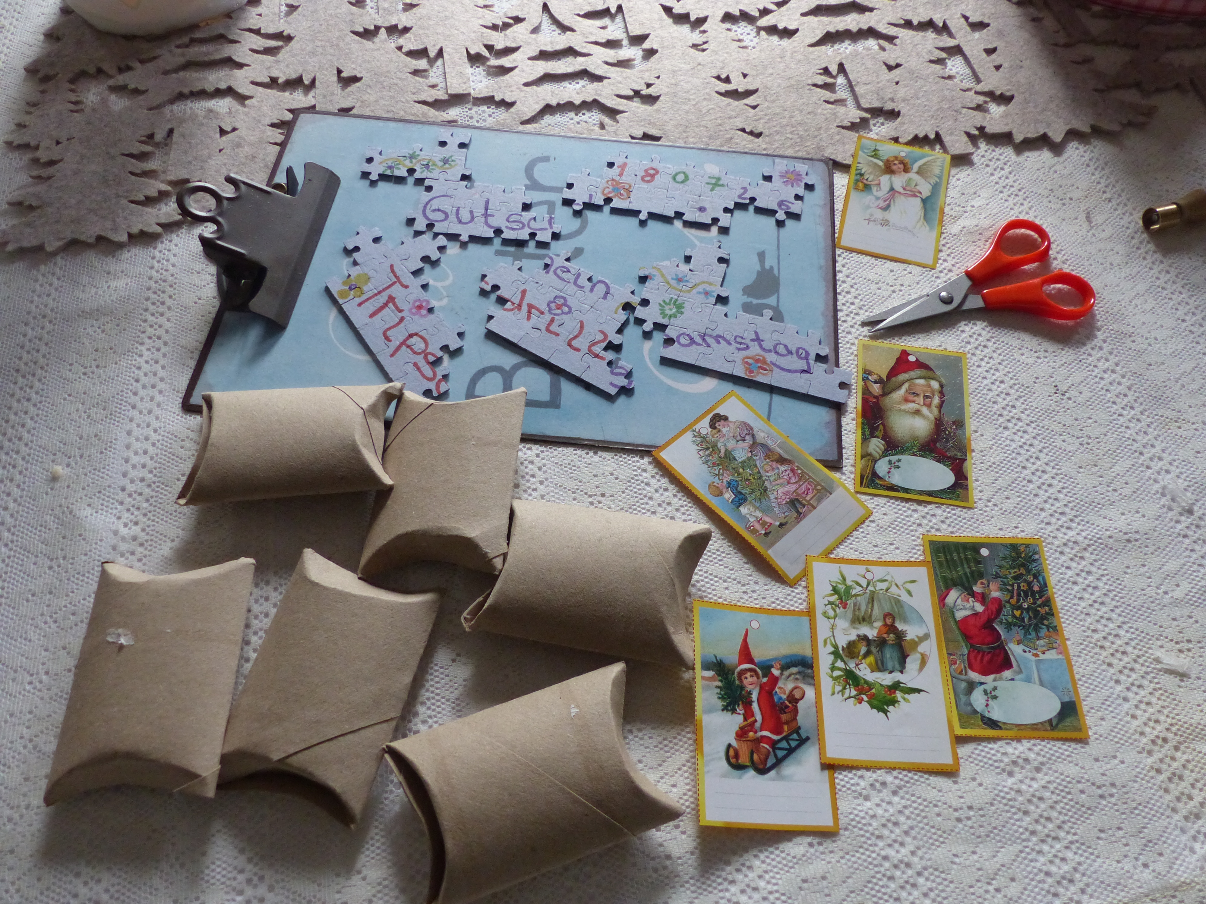 Mir geht es wie Petra - ich hab noch einiges in der Nähwerkstatt, was fertig werden soll. Wenn sich da nicht immer neue Ideen einschleichen würden. Und die Geschenke sind auch noch nicht verpackt. Aber gemach gemach - wir haben ja noch ein bisschen Zeit.