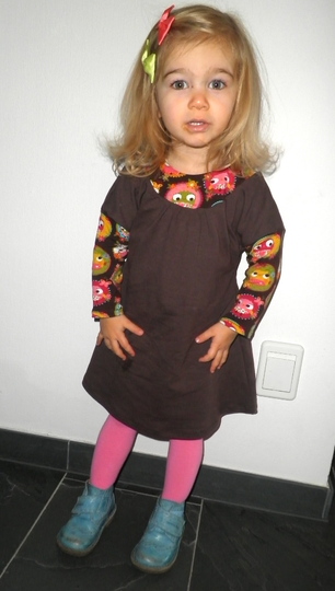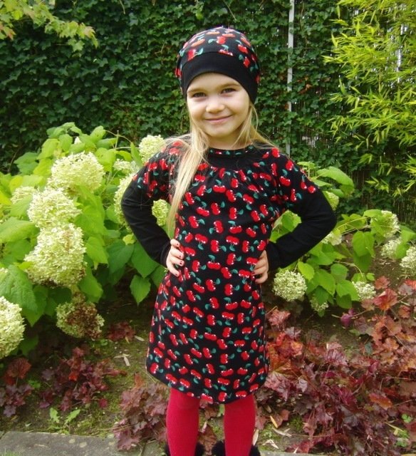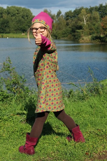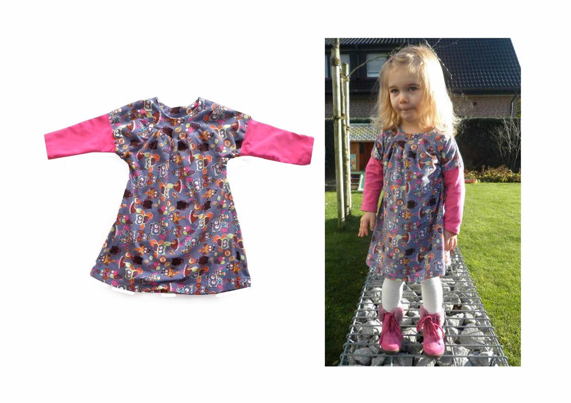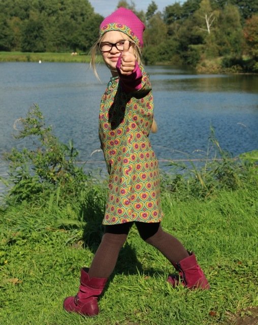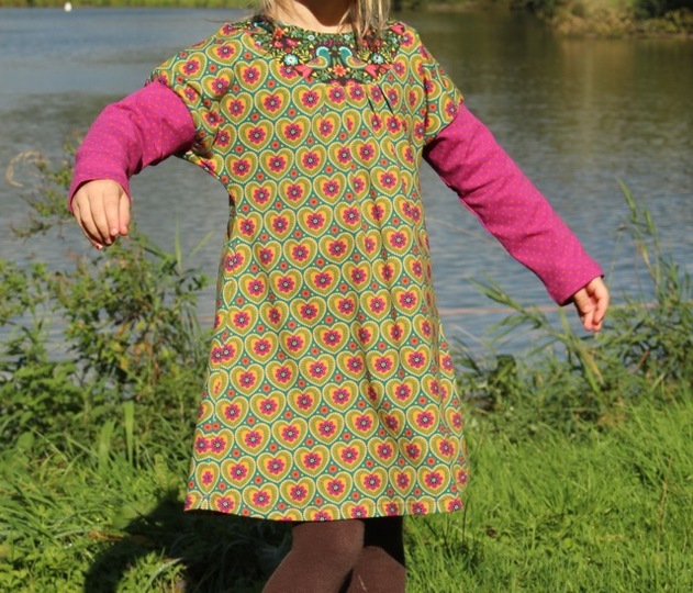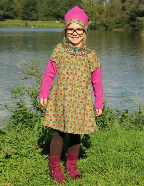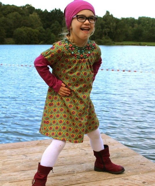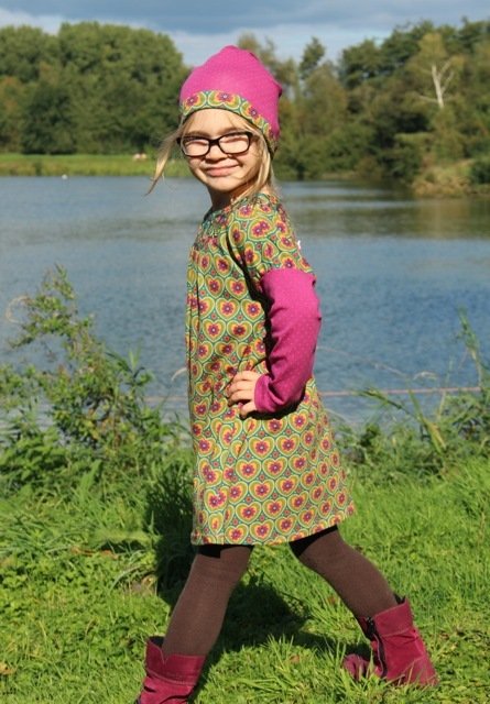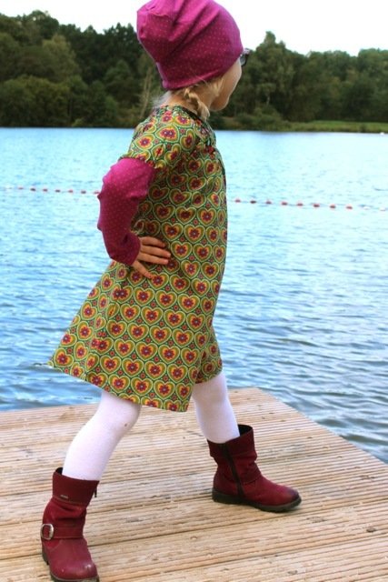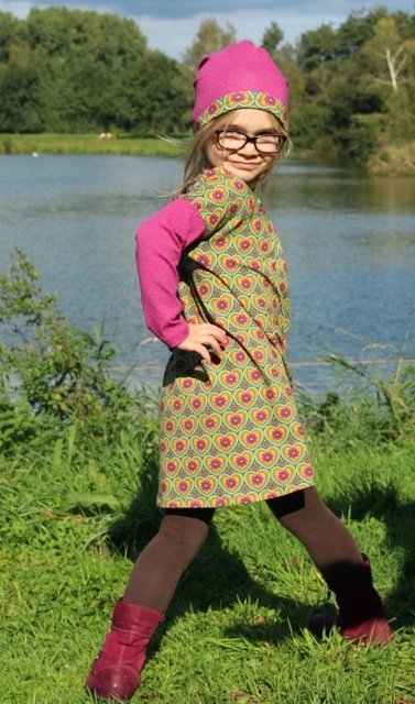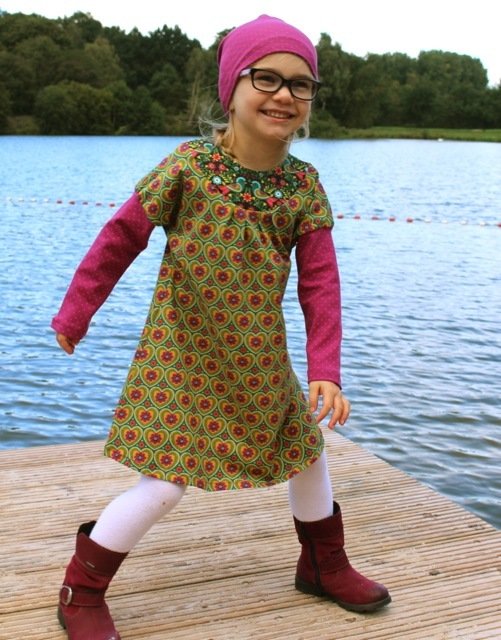 Would you like to sew a pretty dress? Even beginners can dare approach this pattern. You can tailor the neckline / yoke in several ways. Either double or simple and with a bias tape. We explain all variations within the eBook. Why don´t you play around with different fabrics and create a special unique dress? This dress can be worn the entire year, with or without warm tights or with long or 3/4 sleeves.