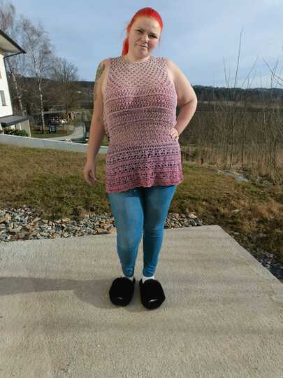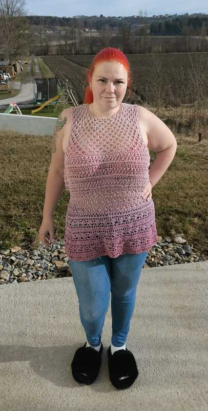 Dieses schöne Oberteil wird von oben nach unten in einem Stück gehäkelt und kann daher an jede Größe und an jeden Körpertyp angepasst werden. Ich erkläre euch wie ihr es perfekt an eure Körperkonturen anpassen könnt.