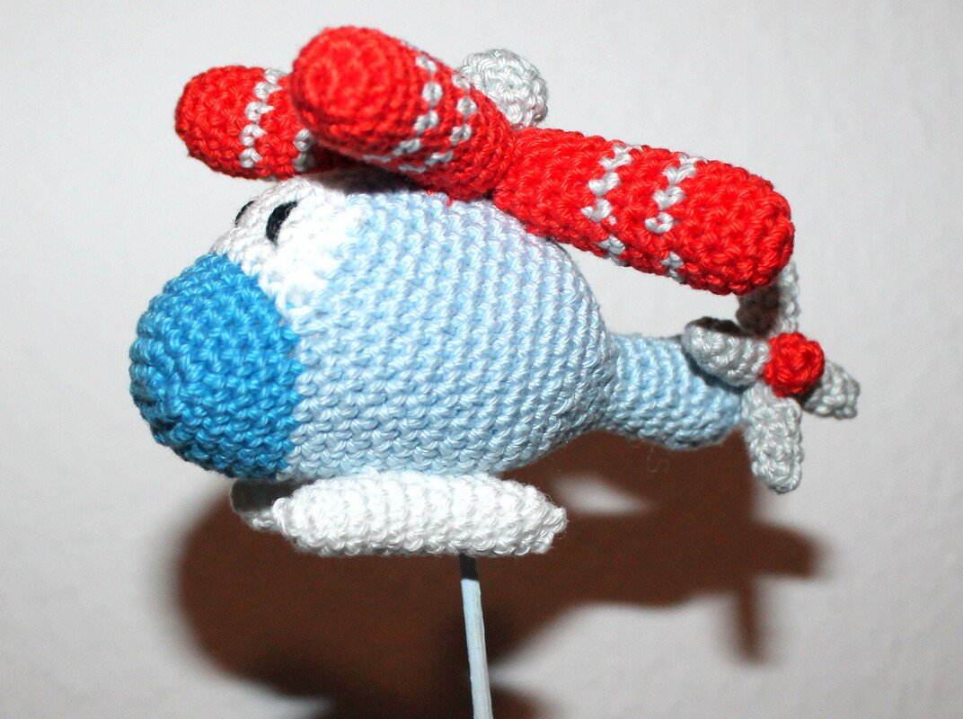 The crochet heli will become about 20 16 cm/ 8 6,5 inches tall.