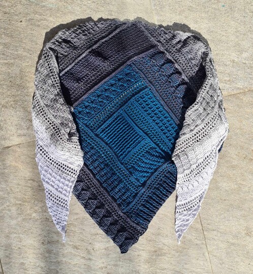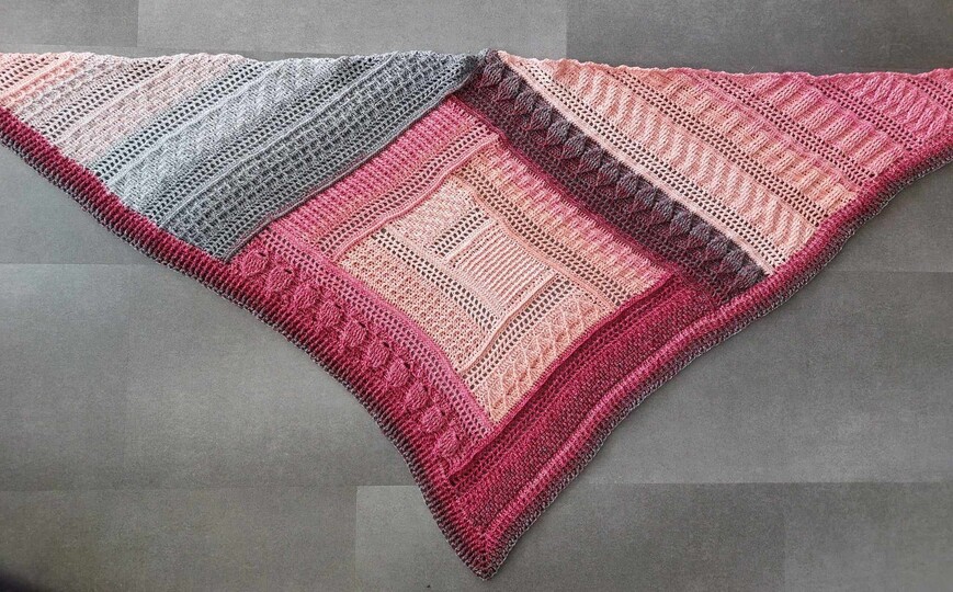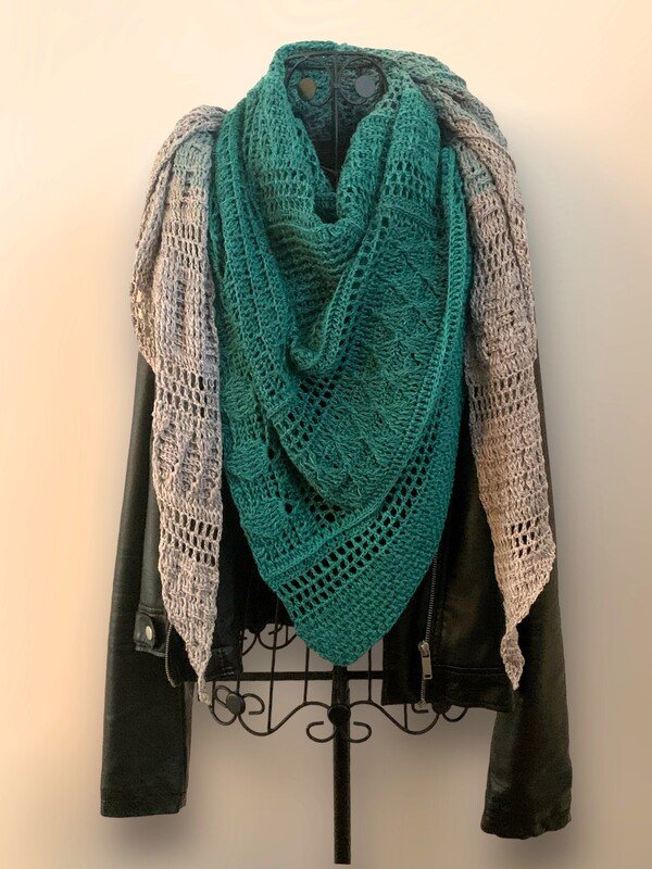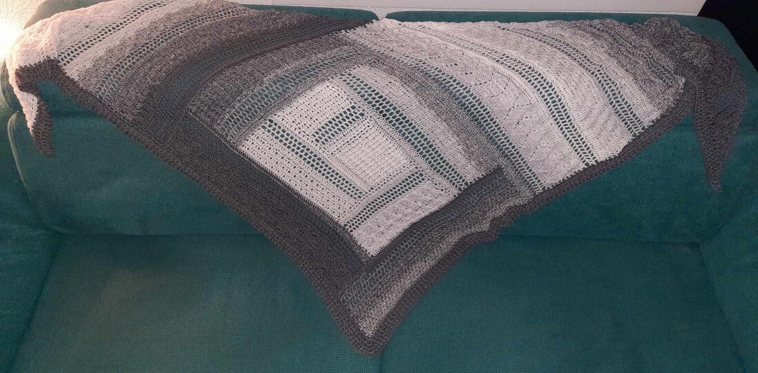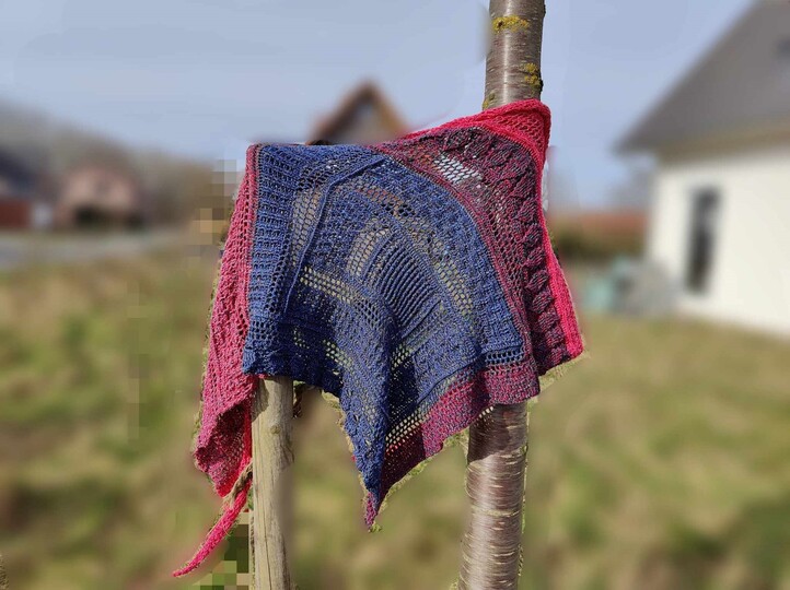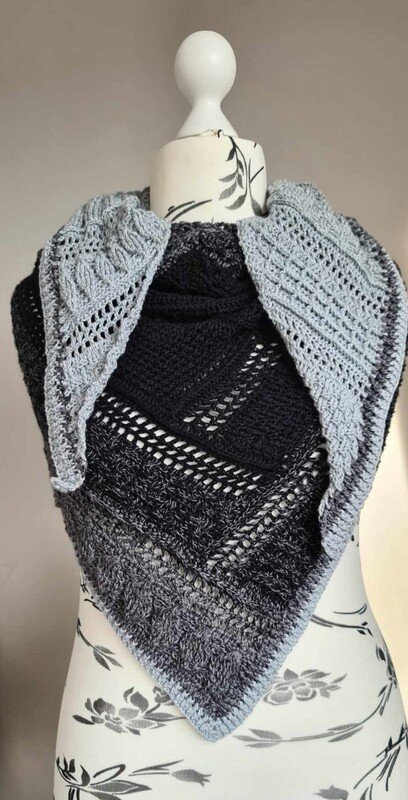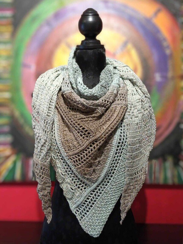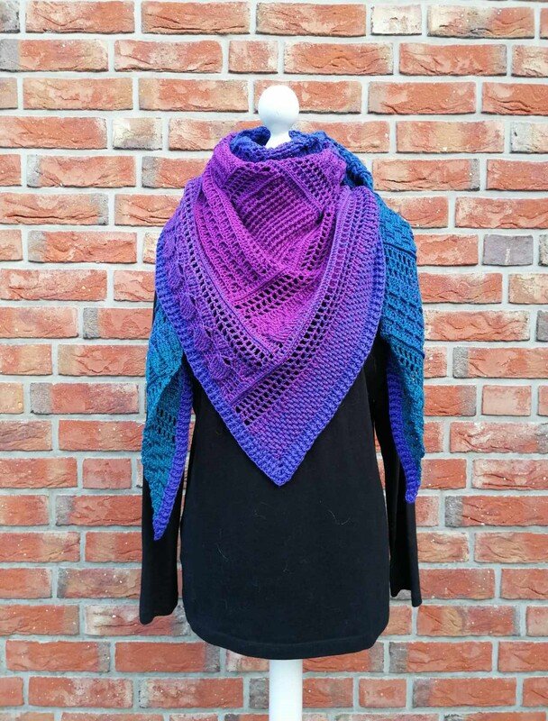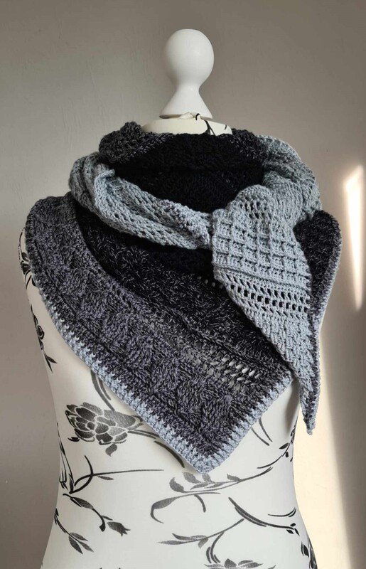The triangular scarf "Melia" is another scarf with the special twist - you rotate your scarf regularly and create the unique pattern this way. The rows are quite short, so you will not get bored while crocheting it!
