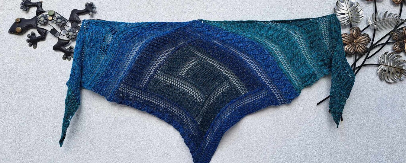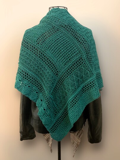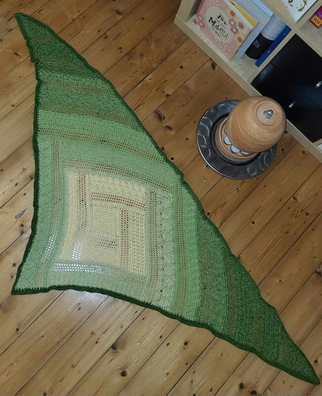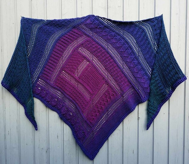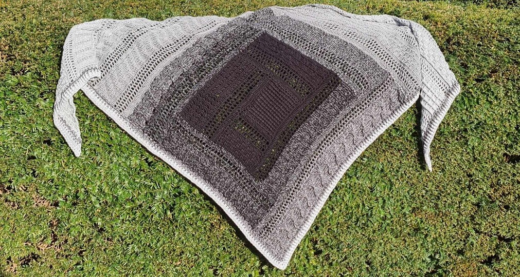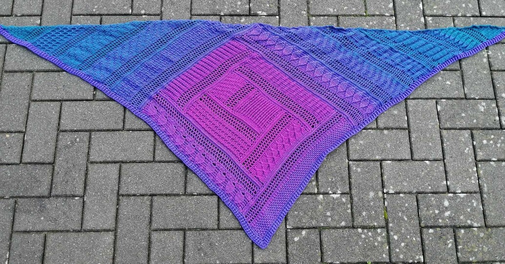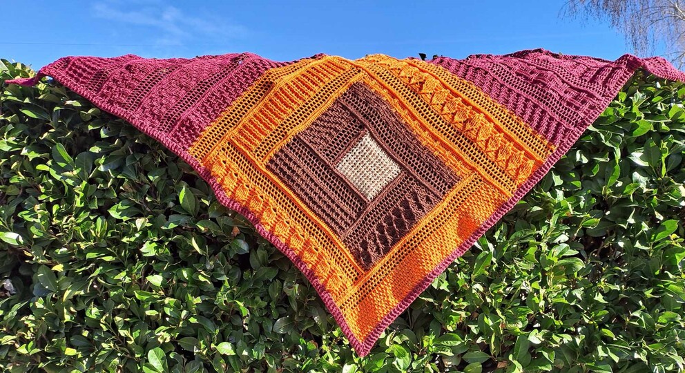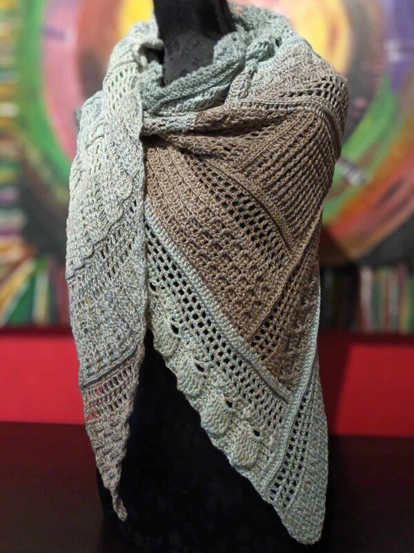 The triangular scarf "Melia" is another scarf with the special twist - you rotate your scarf regularly and create the unique pattern this way. The rows are quite short, so you will not get bored while crocheting it!