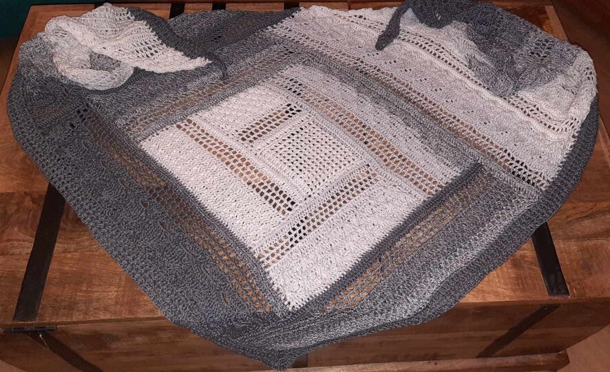 Please note, due to the special design of the scarf, it is not possible to crochet it larger/smaller easily. If you want to modify the size, you have to use different wool and a different crochet hook size.