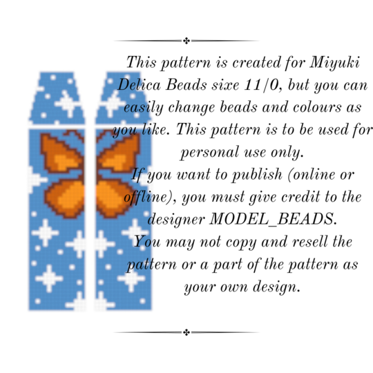 This pattern is created for Miyuki Delica seed beads size 11, but you can chop and change colors and beads as you please)