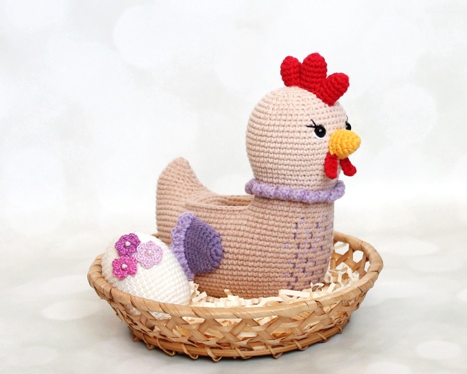 The hen has a hole in its back where you can place an Easter egg (real or decorative). Put her in a basket, and it will become a decoration on the Easter table!