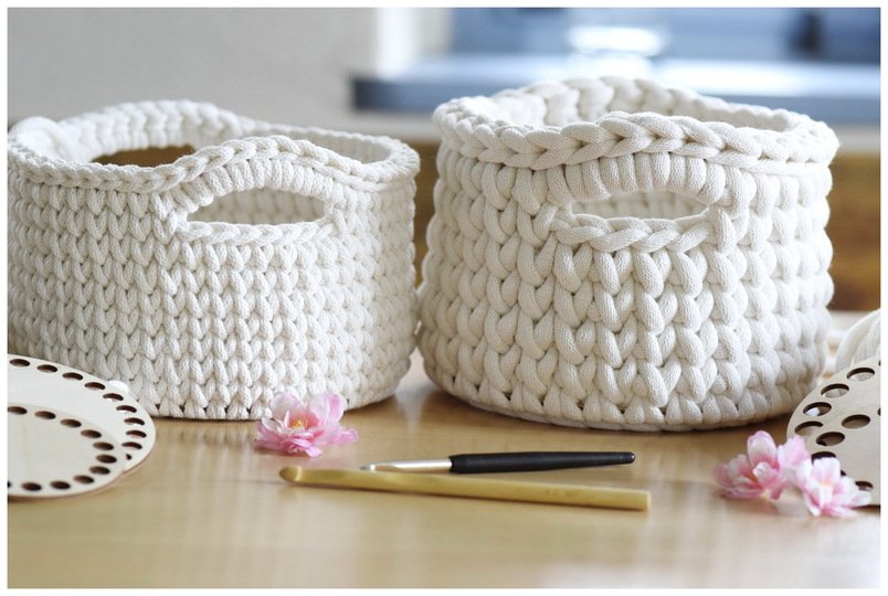 In den letzten Jahren habe ich intensiv verschiedene Varianten von Körbchen mit Holzböden entworfen und gehäkelt. Dadurch habe ich mich sehr weiterentwickelt und viele neue Arbeitsschritte und Tricks entwickelt. Diese möchte ich nun in dieser neuen BASIC 2.0 Anleitung mit euch teilen. Mit dieser Anleitung kannst du Häkelkörbchen mit einem Holzboden in Rund mit Bobbiny Premium und Bobbiny Jumbo im Strickstich arbeiten. Ich erkläre dir alles zum richtigen Material, welche Garnstärke für welches Projekt und welche Lochgröße passt. Auch habe ich wieder ein Materialpaket, für die Größe 3 mit 20cm im Durchmesser, zusammengestellt, so dass du gleich alles Wichtige beisammenhast und gleich loslegen kannst.