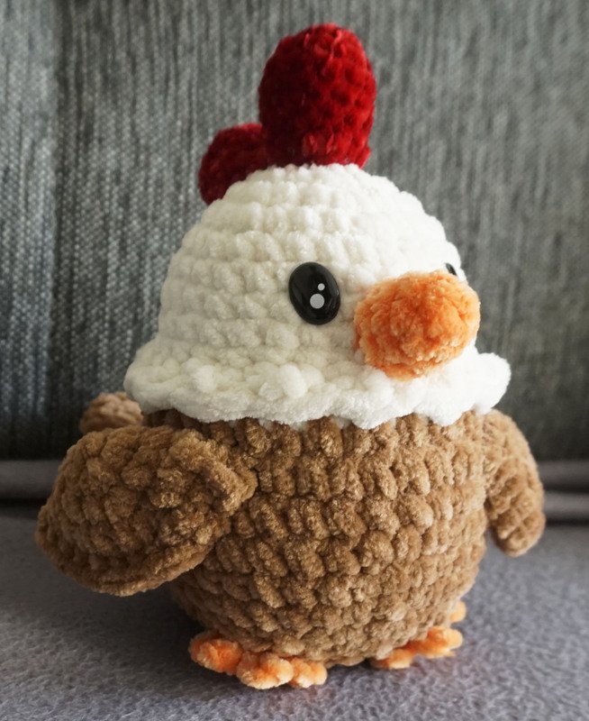 In the crochet instructions, the manufacture of the Chicken is described in Englisch (US) and with numerous pictures on a total of 8 pages. In our instructions there is always a picture for each step, so that you can easily rework.