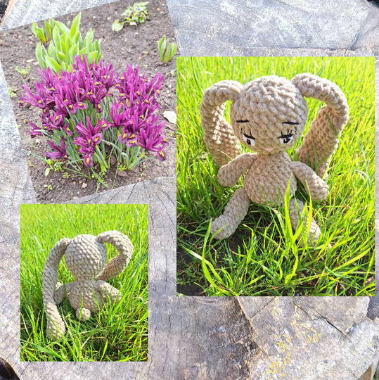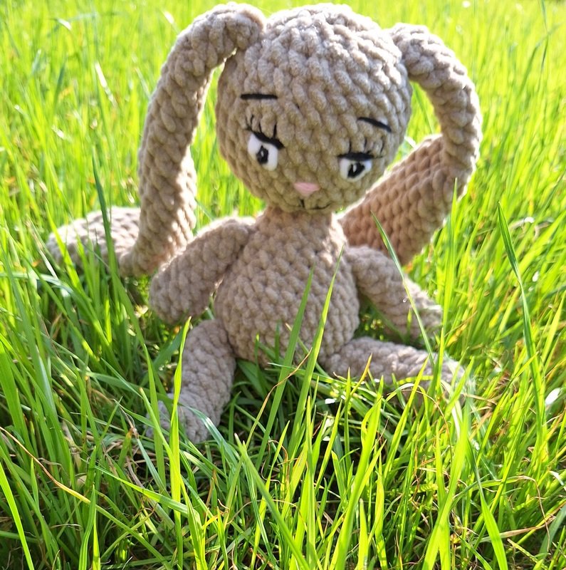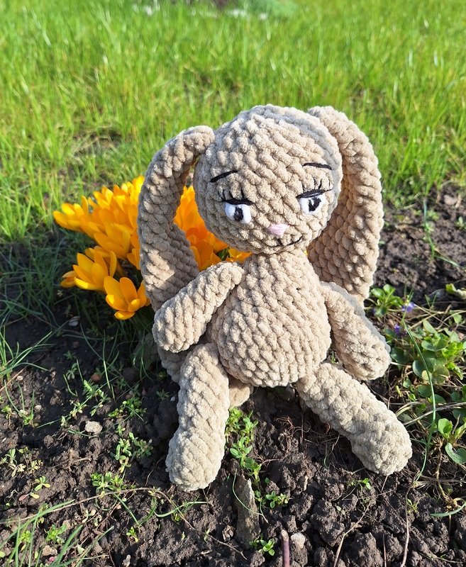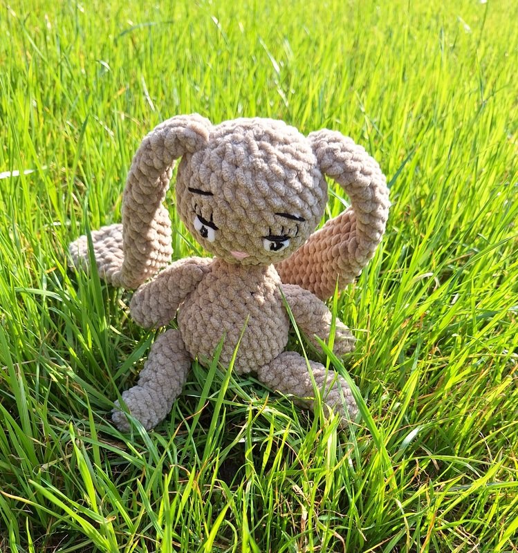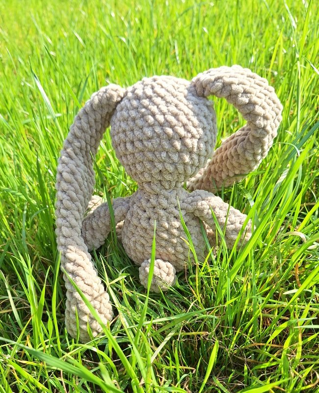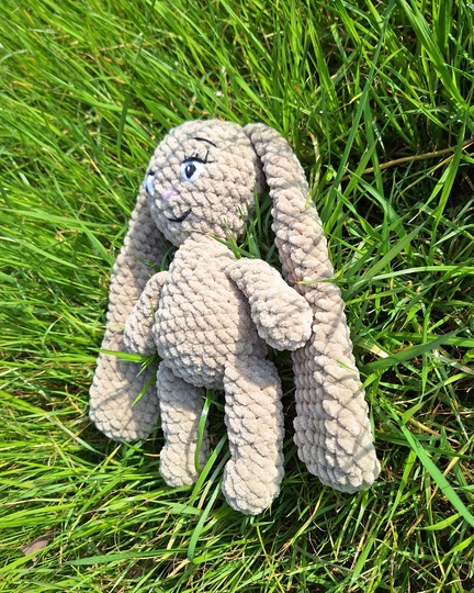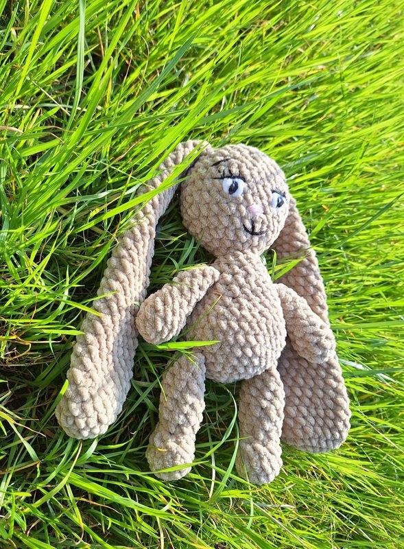 This is a PDF pattern for crocheting a cute plush bunny with long ears. The bunny will be about 30 cm tall with the specified yarn and needle size.