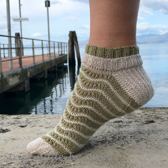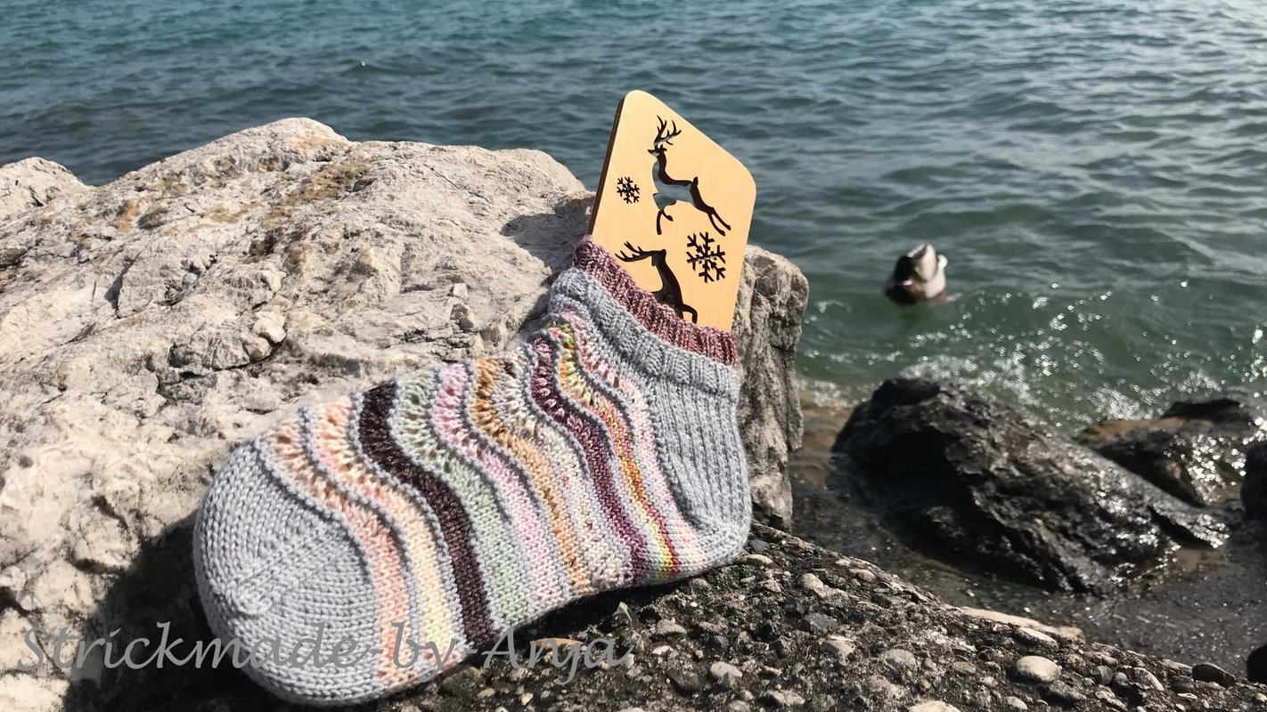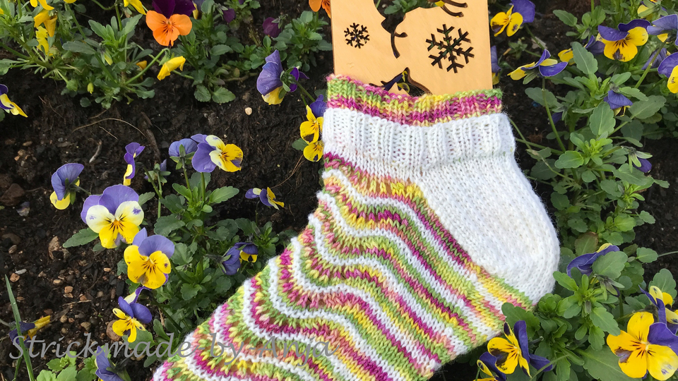 Whether you use 2 colours, combine several remnants or even knit them in a single colour, these sneaker socks knit themselves.