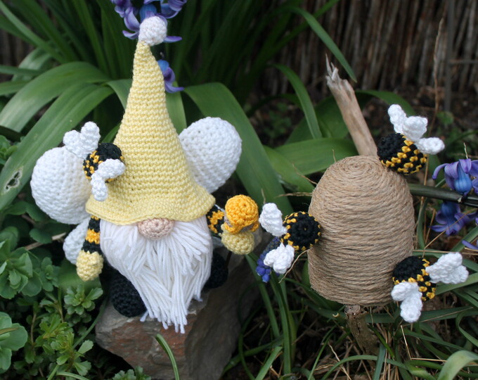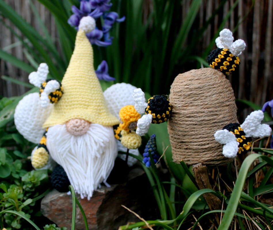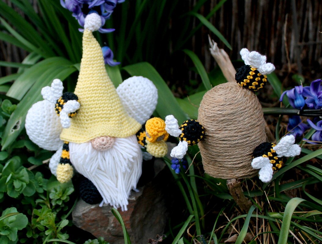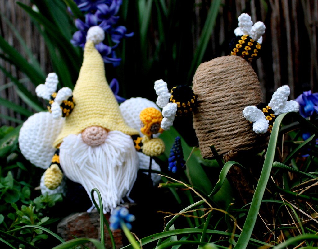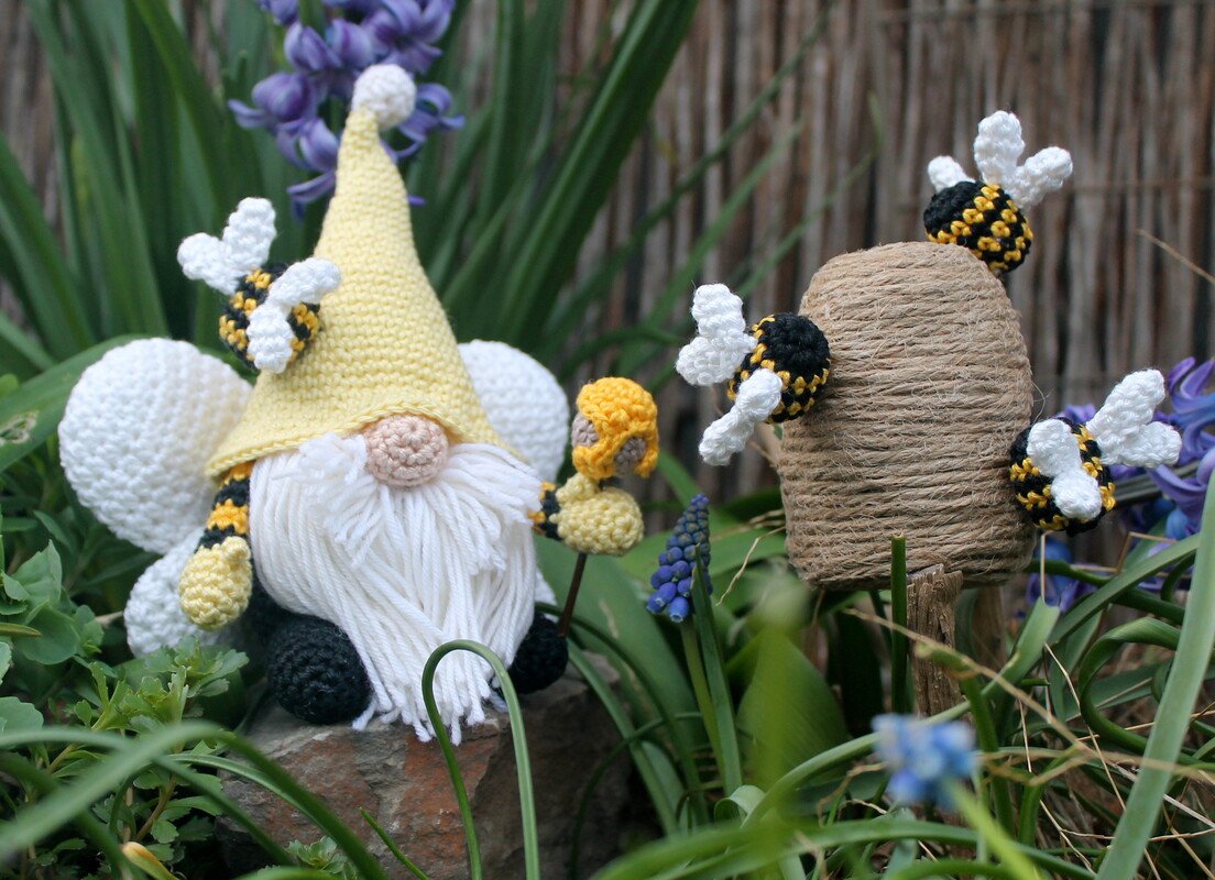 The bee gnome is looking forward to spring like a snow king when everything is in full bloom.