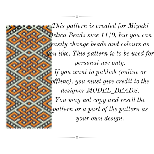This pattern is created for Miyuki Delica seed beads size 11, but you can change colors and beads as you please.