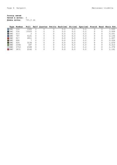 A The consumption of thread for cross stitch.