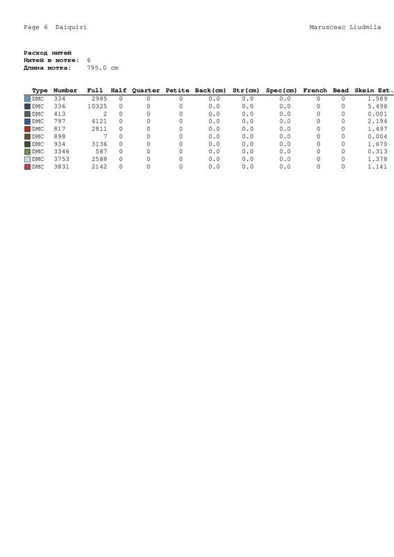 A Symbol Key page in DMC floss code