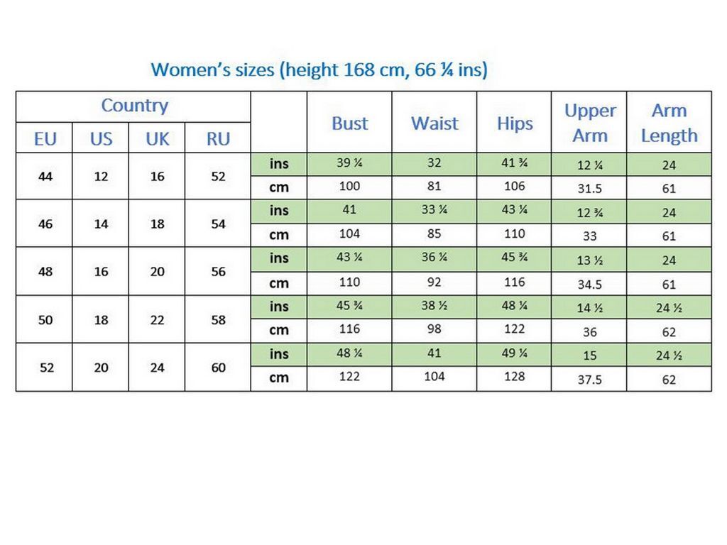 for Sizes 44-52 (EU) / 12-20 (US) / 16-24 (UK)