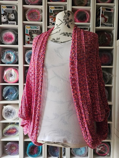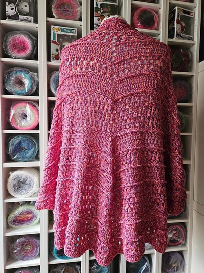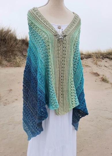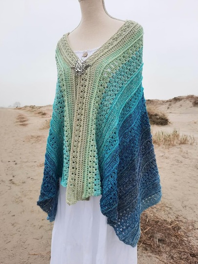 The wrap in a slight V cut is crocheted in rows from the bottom up. Turn after each row.