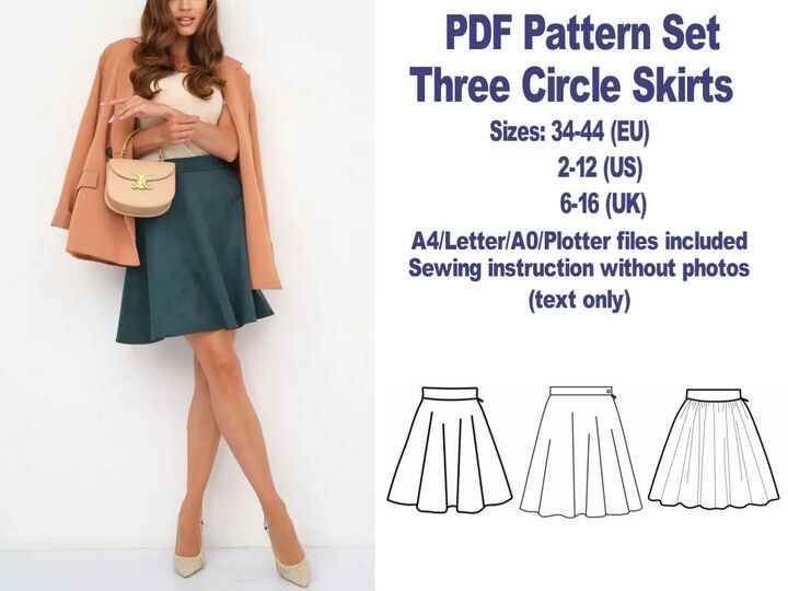 1. Full circle skirt: gabardine, jersey, satin, сotton blend, linen, wool 140 cm width